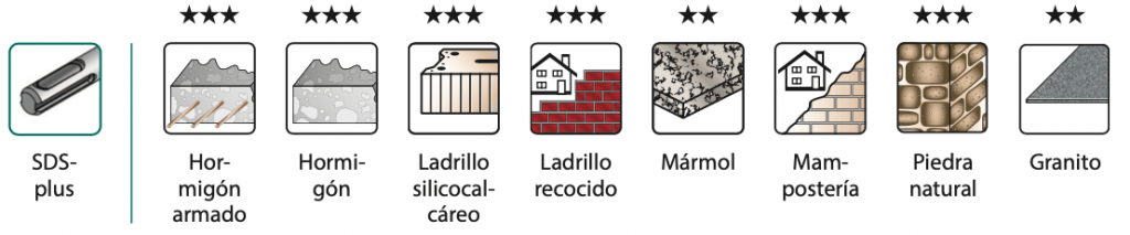 - Broca multicorte especialmente potente y robusta con cabeza multipunta patentada